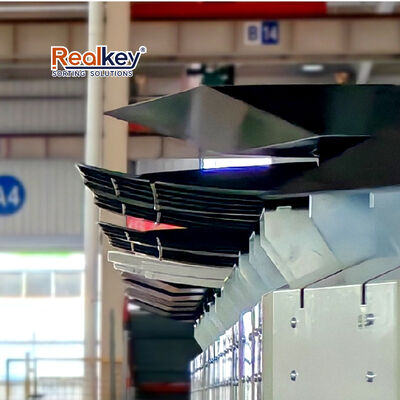 This advanced automated sorting system features multiple sorting destinations and includes an infeed conveyor with integrated barcode reader technology. Designed specifically for garment handling and IFID integration applications, the system provides efficient, accurate sorting capabilities for warehouse and distribution environments.